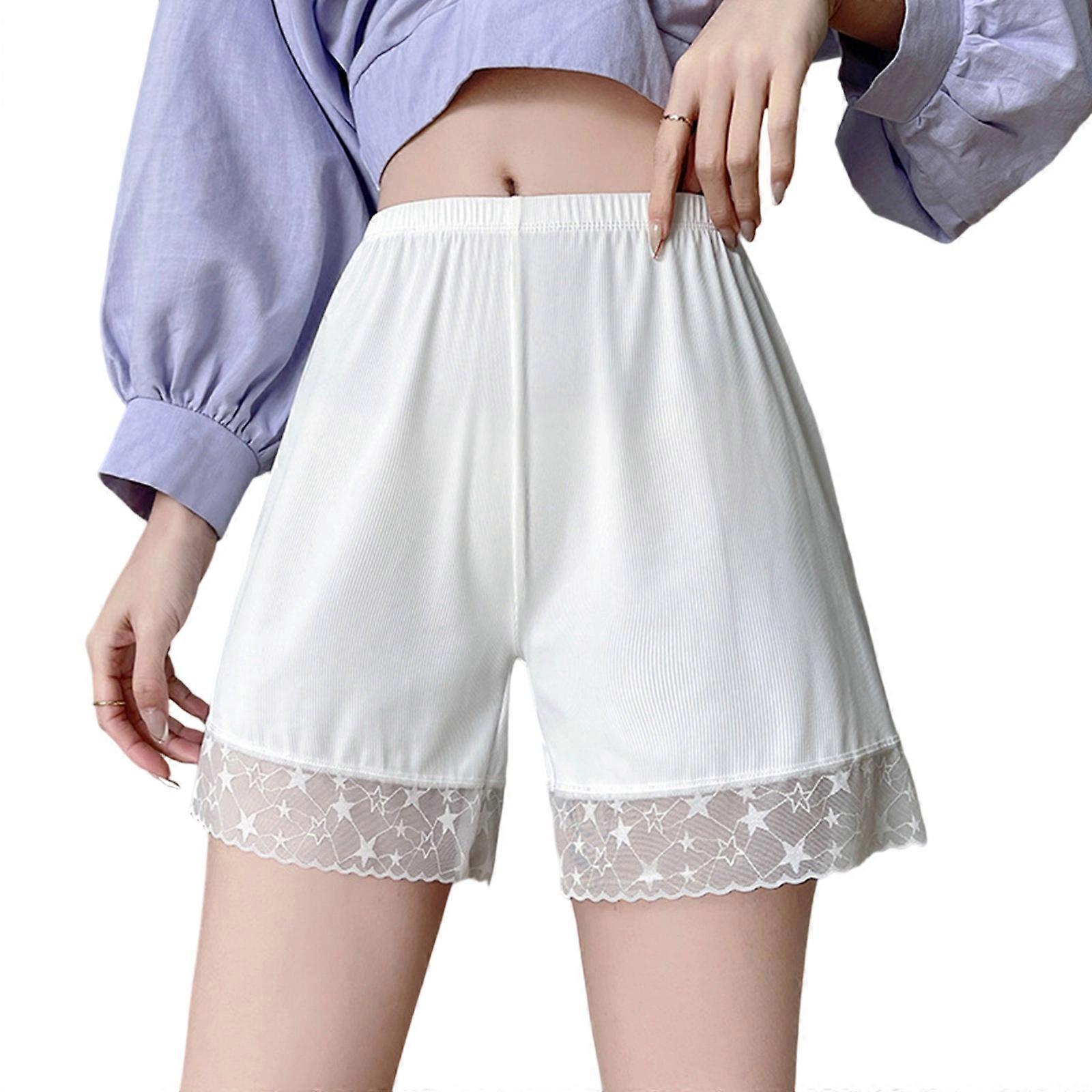 Women's Lace Trim Half Slip Shorts Safety Pants Elastic Waist Wide Leg Bloomer Shorts Underwear for Under Dresses Skirts White XL
