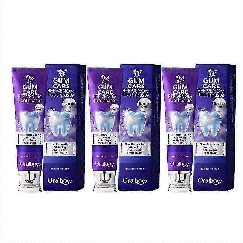 3pcs Bee Venom Toothpaste for Gum Restoration, Purple Teeth Whitening Toothpaste for Sensitive Teeth, Anti-plaque -Breath Fresheners,100g