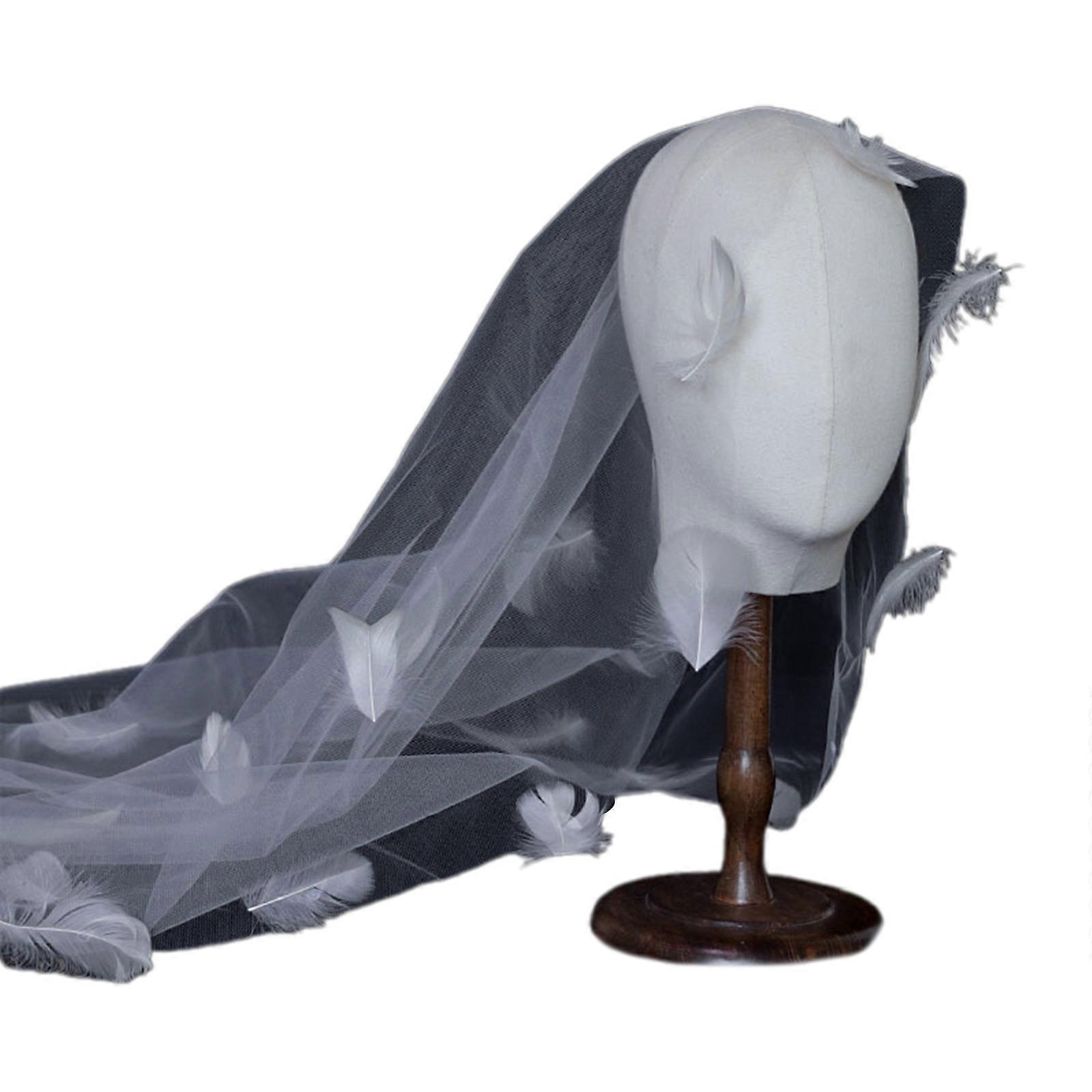 Long Feather Tulle Marriage Bridal White Veil for Marriage Wedding Celebration Party Photography Tulle Accessories Multicolor