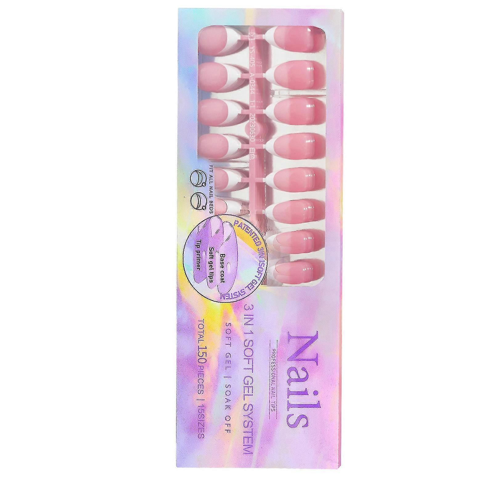 150Pcs Press On Nails Soft Gel False Nail Tips 3 in 1 Pre-Colored French Nails Fake Nails 14 Sizes for Nail Extension Multicolor