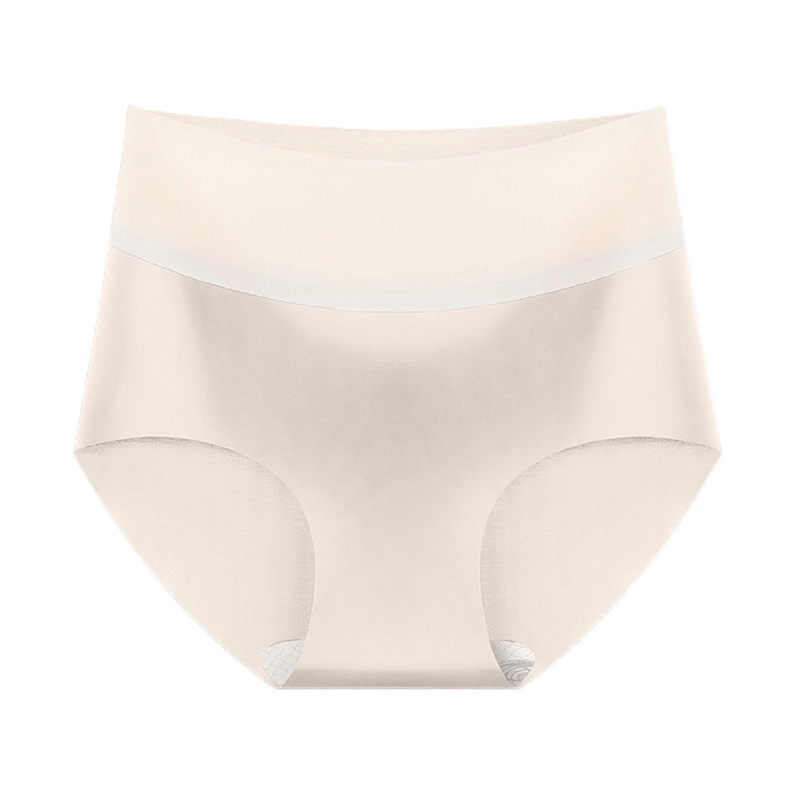 Women's Seamless Hipsters No Show Invisible Ice Silk Stretch Underwears High Waist Bikini Underwear Panty Milky complexion XL