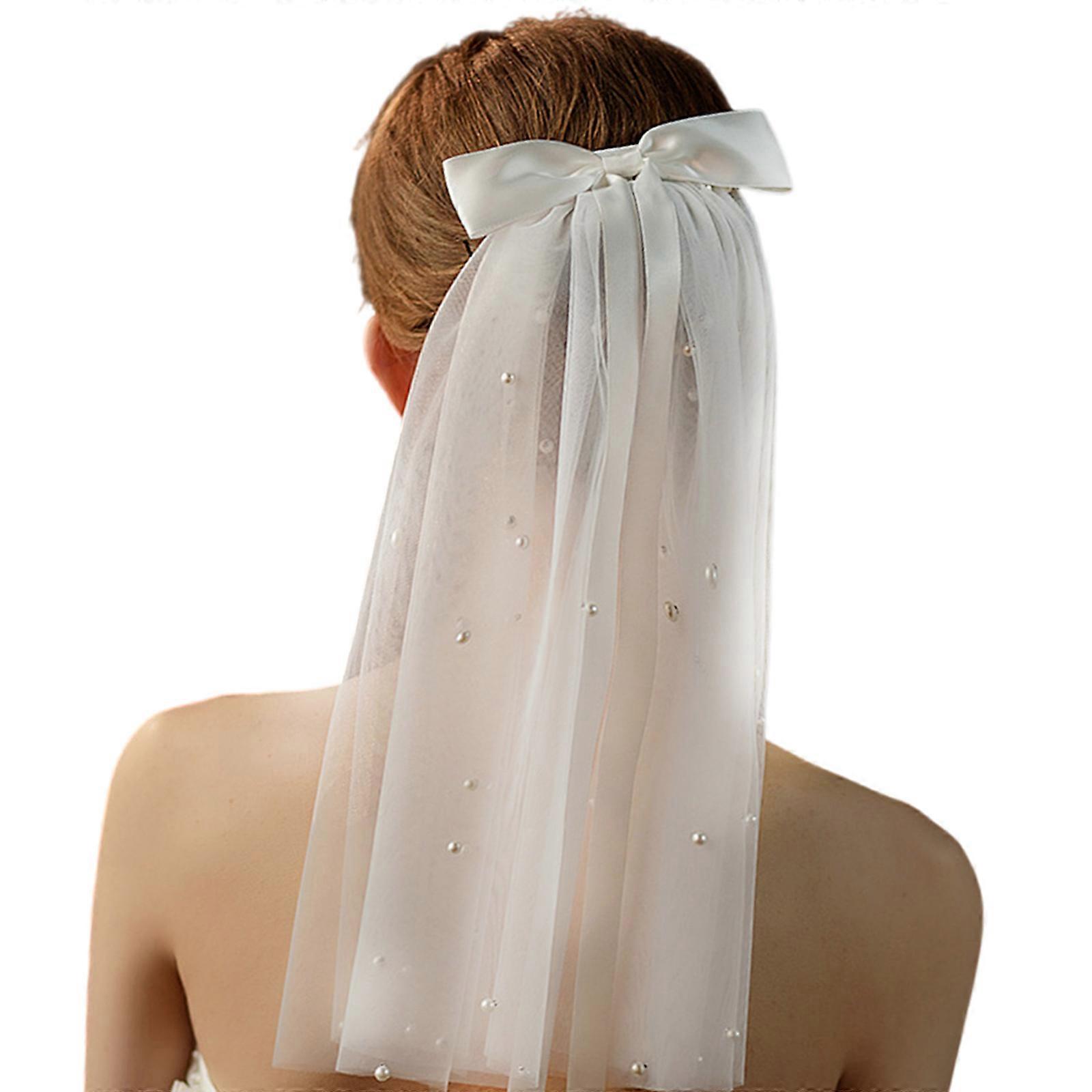 Classical Double Layer Bridal Veils with Artificial Pearls Accents And Bowknot Decoration For Wedding Ceremonies Photos Multicolor