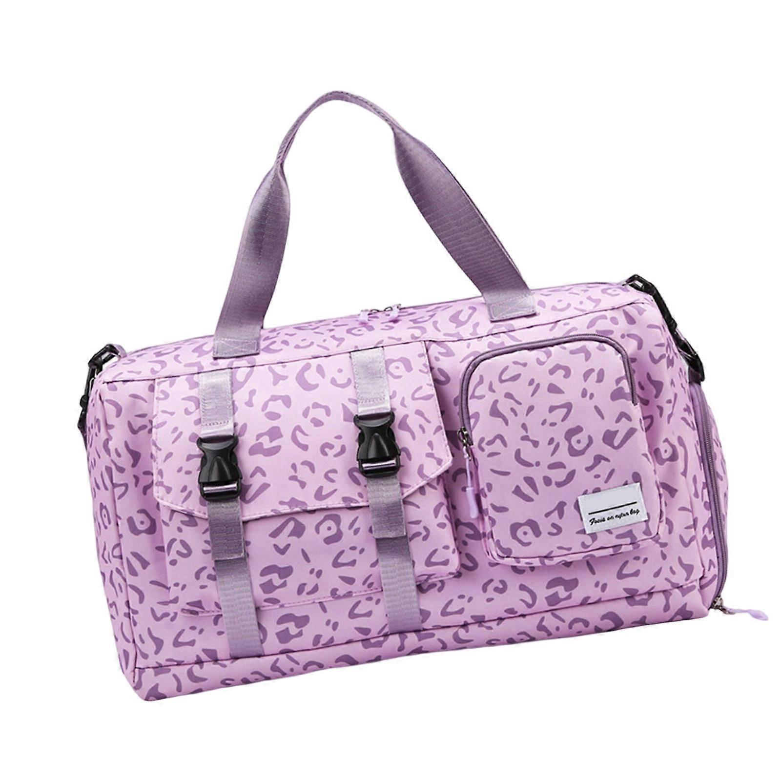 Fashionable Cow Leopard Print Gym Bag Water Resistant Oxford Spacious Compartments For Sports Travel Daily Carry Purple
