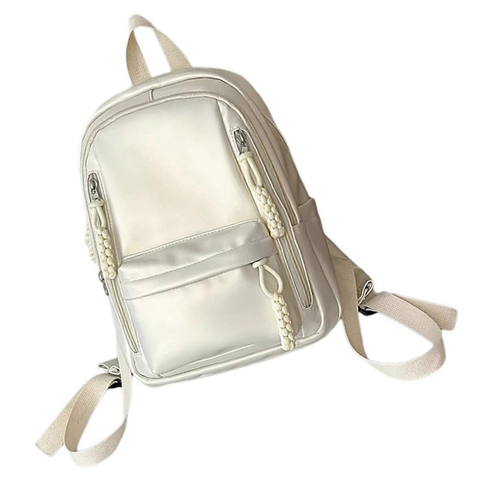 Elegant Soft PU Leather Backpack for School and Work Multifunctional Laptop Travel Daypack College Student Book Bag White small
