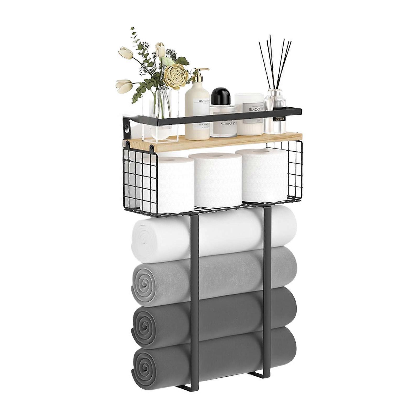 Features: Elevates your bathroom organization with this sturdy wall mounted towel rack featuring a double layer design, raised edges, and a ventilated base for quick drying – perfect for maximizing vertical storage in small spaces. Crafted from rusts resistant metal and natural wood, this space saving shelf combines a middle crossbars for slip proof towel security and versatile installation option to suit various wall types. Ideal for apartment renters, organizing enthusiasts, and simple homeowners seeking functional yet stylish solution for cramped bathrooms or laundry rooms. Streamlines mess in RVs, campers, or multiple use spaces like kitchens and bedrooms while maintaining modern bathroom decors with this durable black finished storage unit. Thoughtfully designed with gift ready packaging, this bathroom storage shelf doubles as practical vertical towel rack for housewarming presents or holiday surprises that blend utility with bucolic charm. Specifications: Component:Iron+Wood Size:Approx.40x13.5x47cm/15.74x5.31x18.5inches Package Includes: 1Pc Bathroom Storage Rack with Meshes Grids note: Please allow 1-2cm error due to manual measurement. Please make sure you will not mind before you bid. Due to the differences between different monitors, the picture may not reflect the actual color of the item. Thanks!