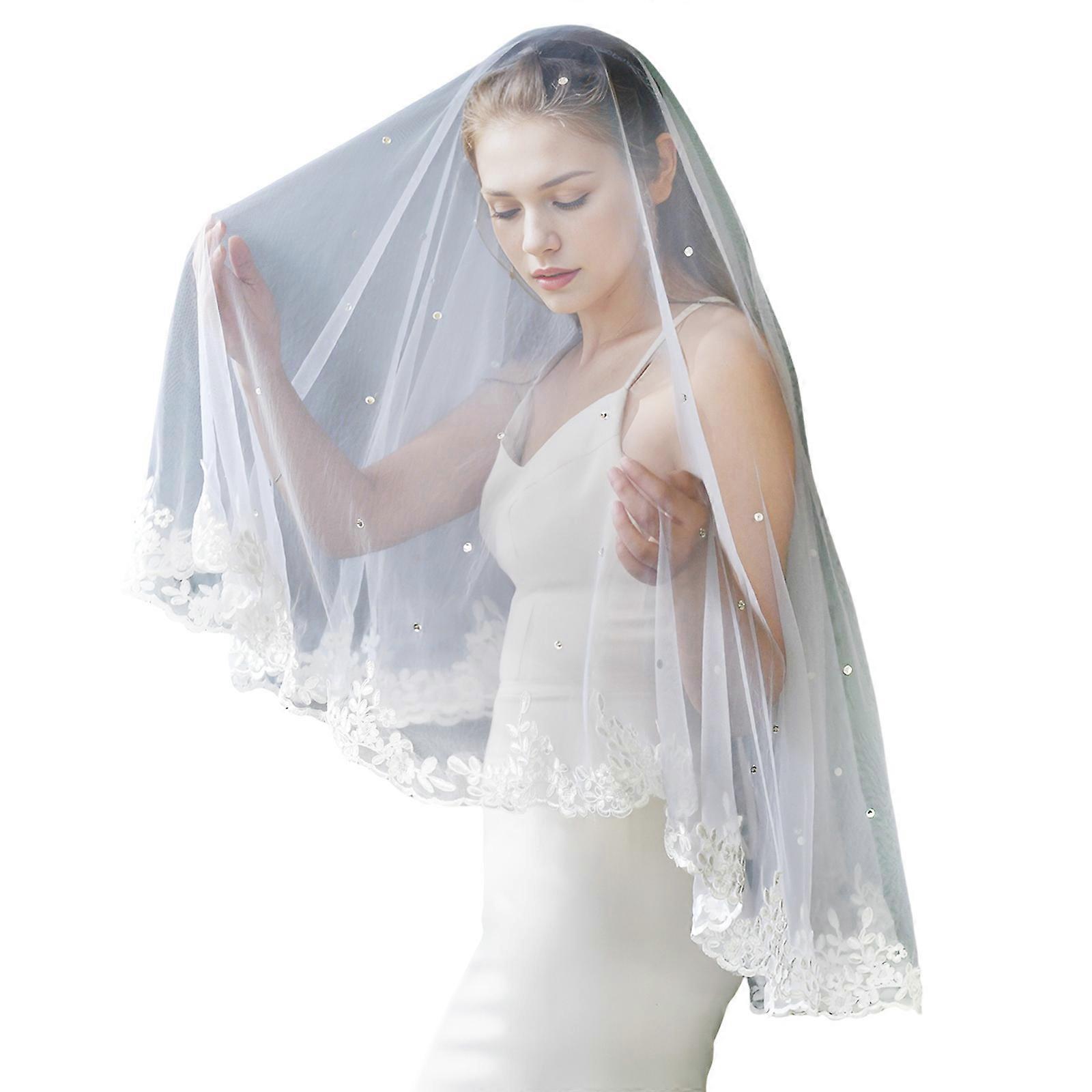 Shimmering Wedding Veils Single Layer Embroidery Lace Trim Comfortable Headcover Bride Formal Occasion Head Accessory White