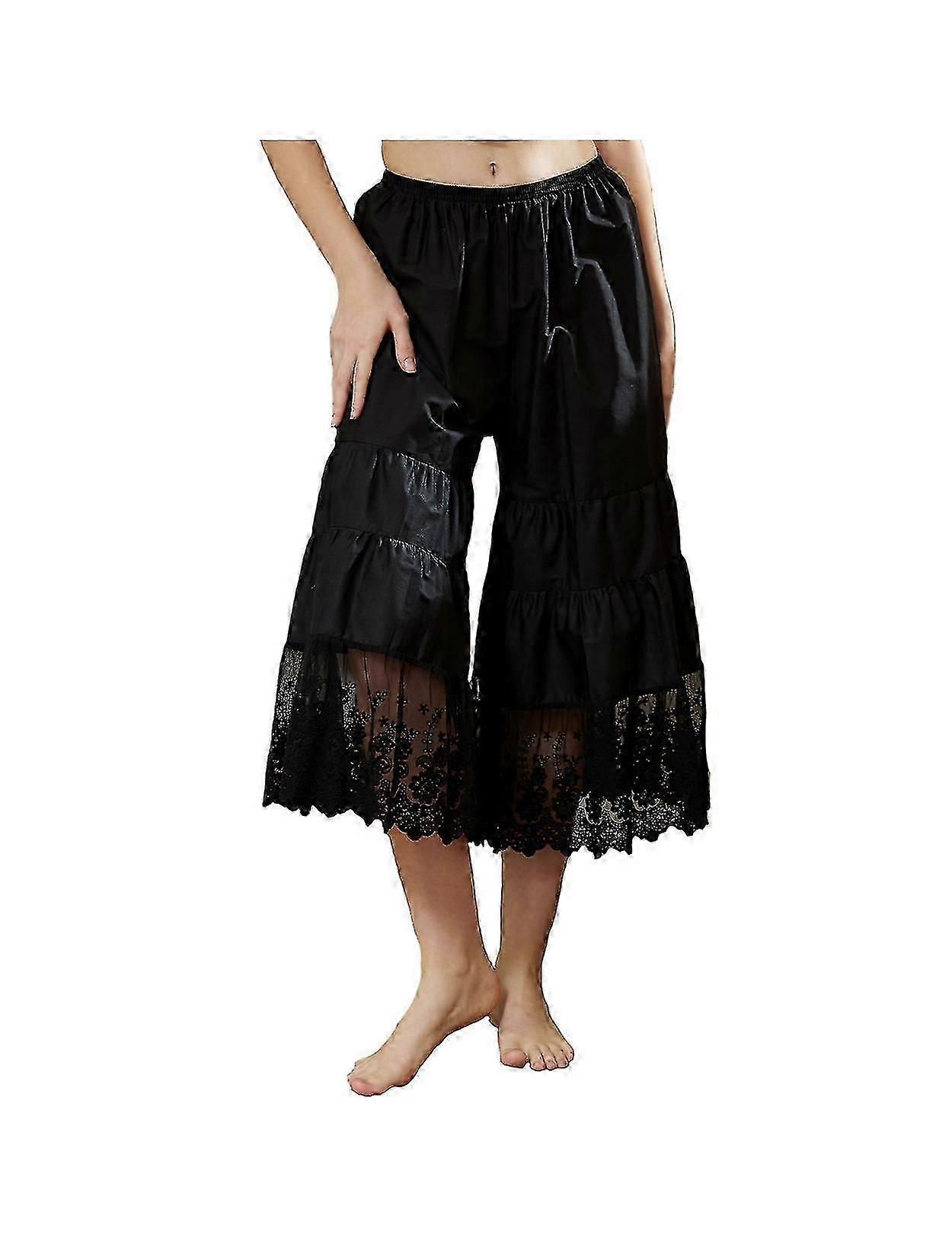 Women Culottes 100% Cotton Half Slip Loose Cropped Pyjama Bottoms With Lace Embroidery Ivory
