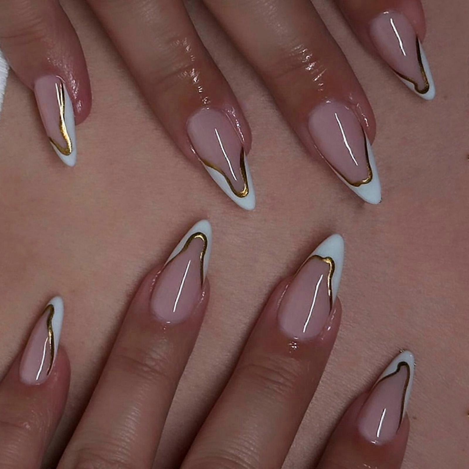 1 Set Artificial Nails Detachable Press On Nails French Tip False Nails Almond Full Cover Stick on Nails for Woman Multicolor