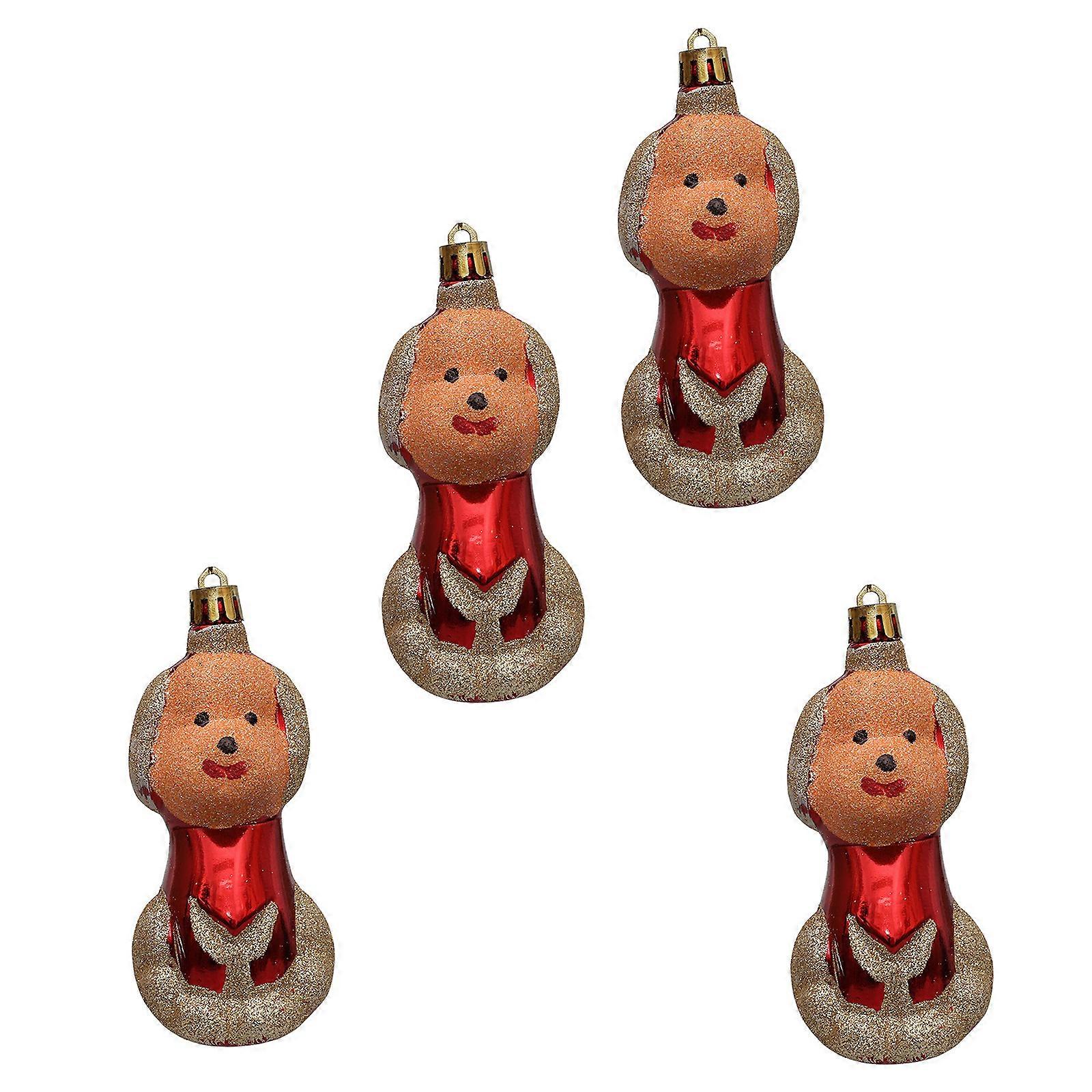 Pack of 4 Christmas Tree Ornament Colorful Festival Baubles with Santa/Dog/Bear Charm Hanging Pendant for Holiday Decors Multicolor