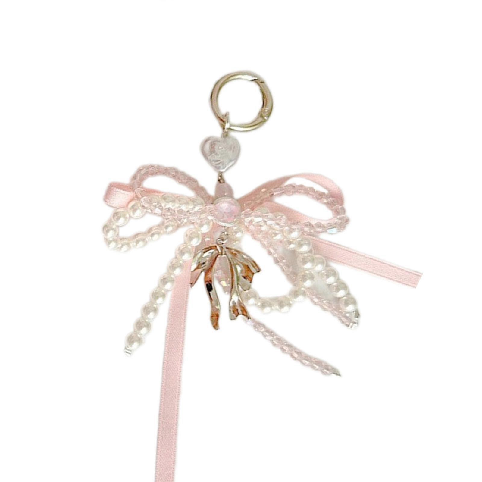 Cute White Bowknot Pearls Keychain Fashionable Pearls Bowknot Key Pendant Sweet Key Chain Charm Women Bag Accessory Multicolor