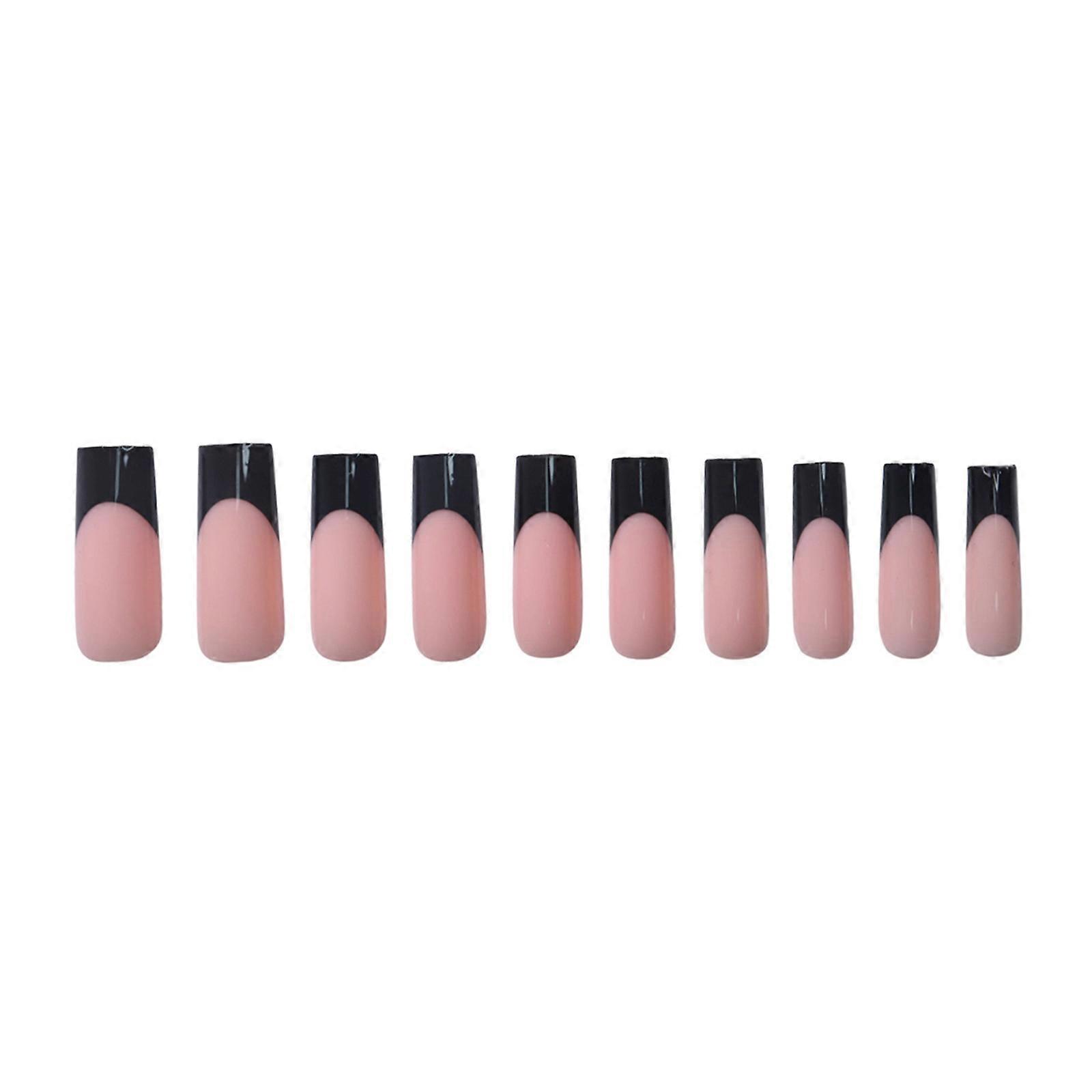 360x Long False Nails Press On Nails French Black Tip False Nails Full Cover Stick on Nails Manicures Supplies for Women Multicolor