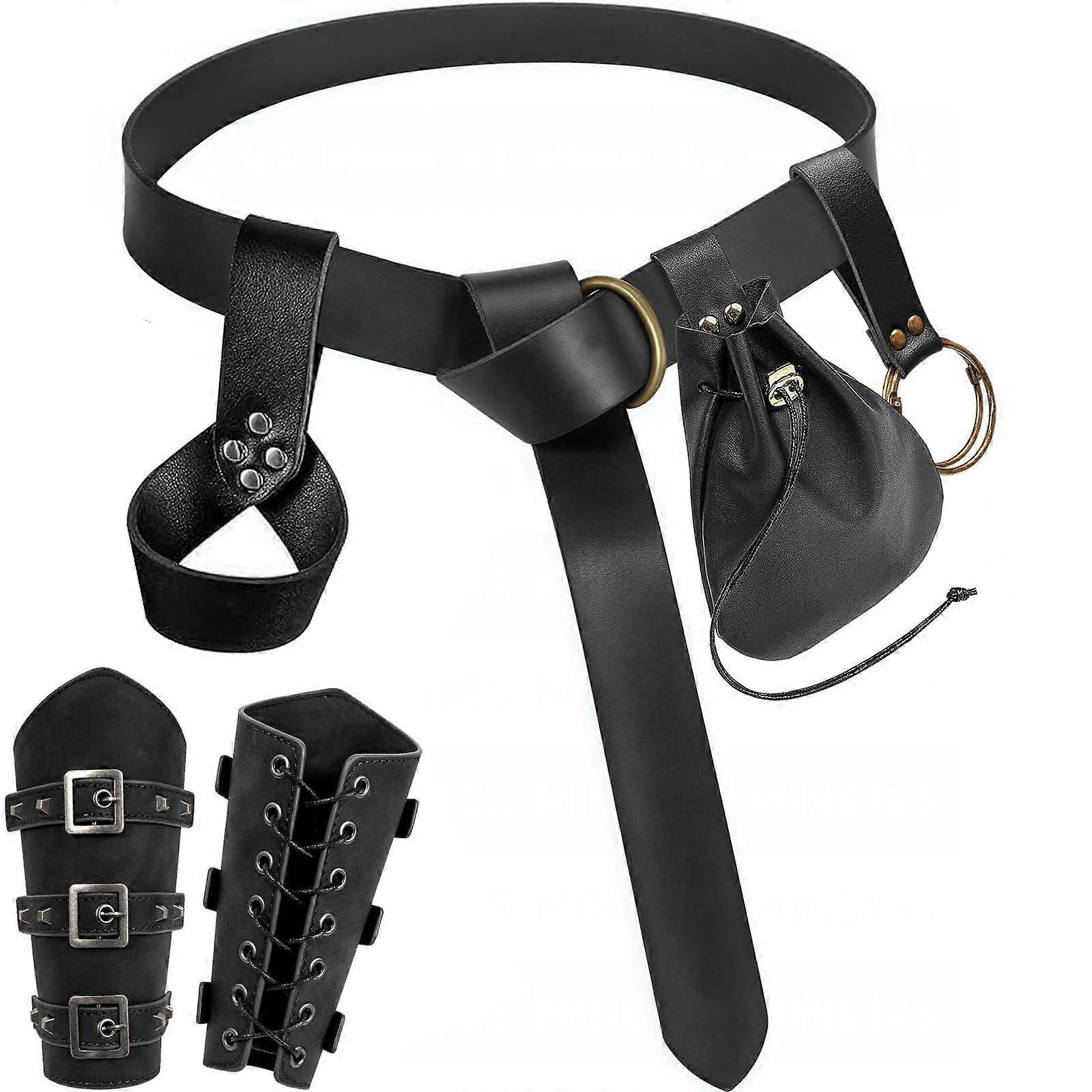 Knights Style Costume Wrist Cuffs Waistband Collection 5PCS Soft PU Leather Roleplaying Gear For Historical Reenactments Black