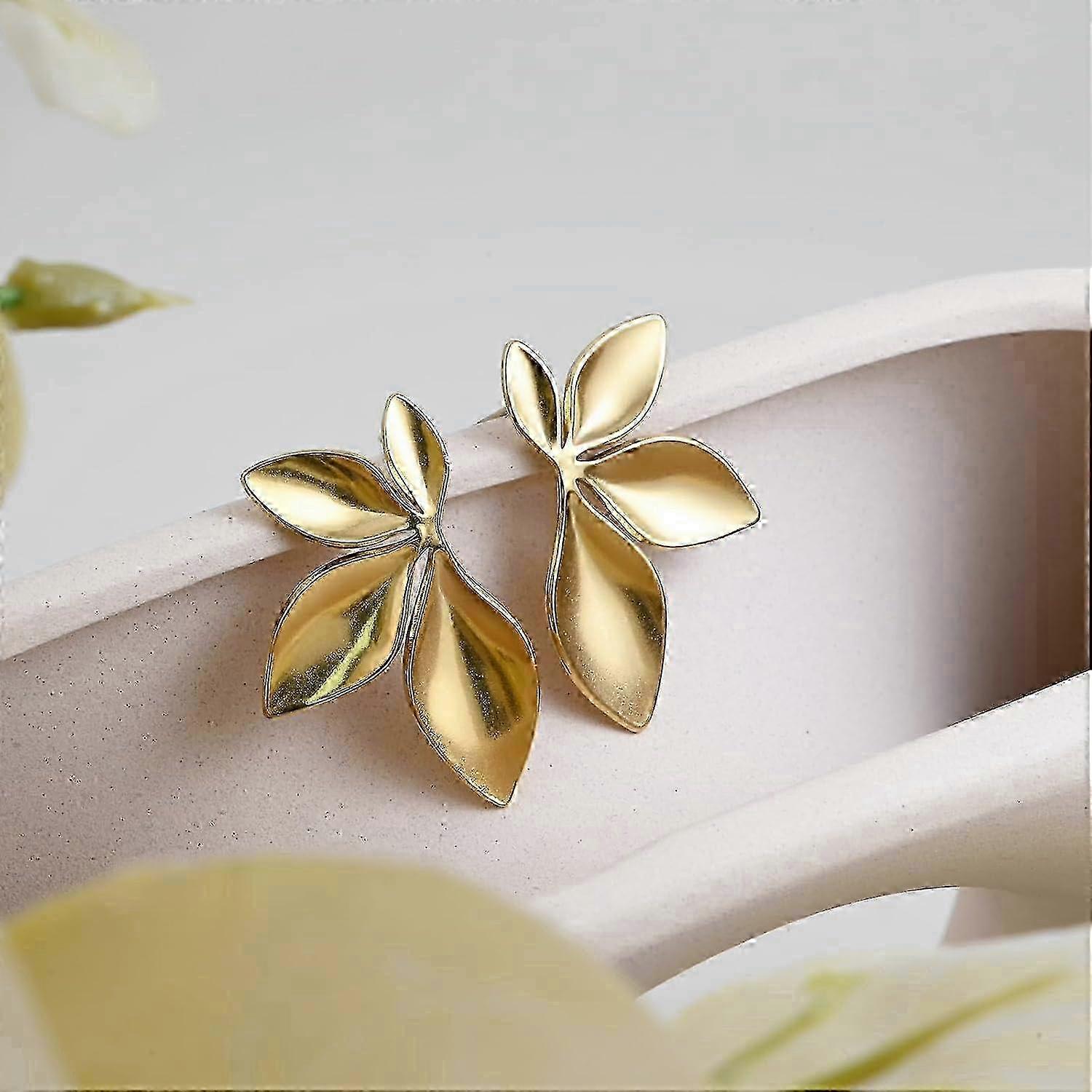 Gold Leaf Stabbing Earrings Middle Leaf Drop Danging Earrings Hypoallergenic Plant Earrings Holiday Leaf Jewelery for Gift