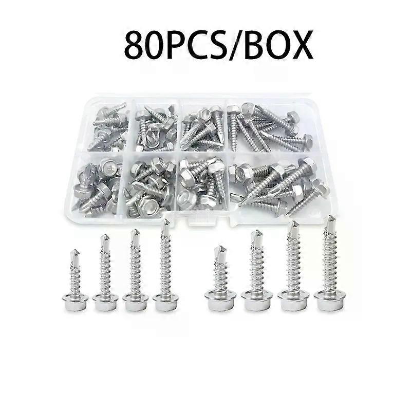 80PCS/Box 410 Stainless Steel Tapping Screw Outer Hexagon Washer Head,External Hexagonal Self-Tapping Drill Tail Screw