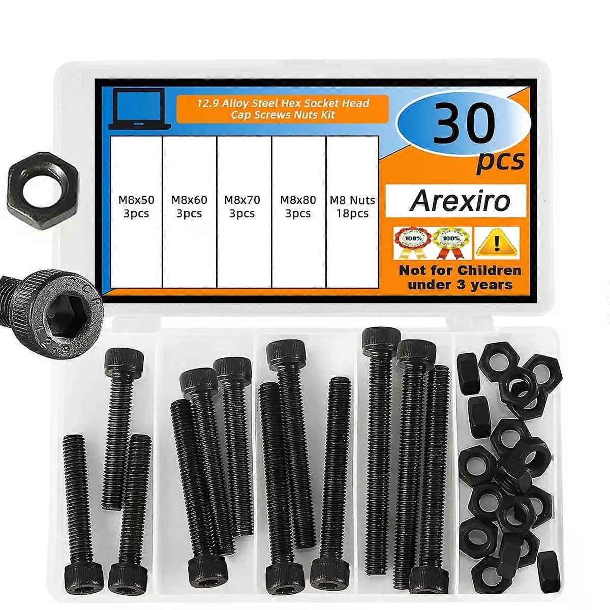 30PCS 12.9 Grade Alloy Steel M8x50/60/70/80mm, Hexagonal Socket Screw Nut Kit