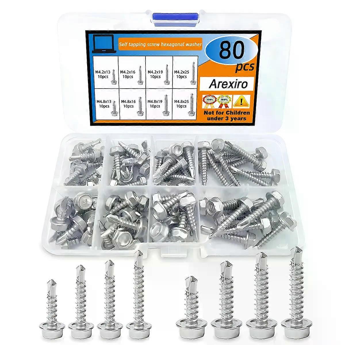 80PCS Tapping Screw Outer Hexagon Washer Head 410 Stainless Steel Plate Tek Screw With Drilling Point Outer Hexagon Drive