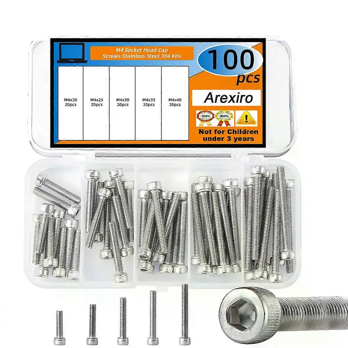 50/100Pcs M4 x 20mm 25mm 30mm 35mm 40mm Socket Head Cap Screws Bolts Stainless Steel 304 Metric Allen Hex Assortment Kits