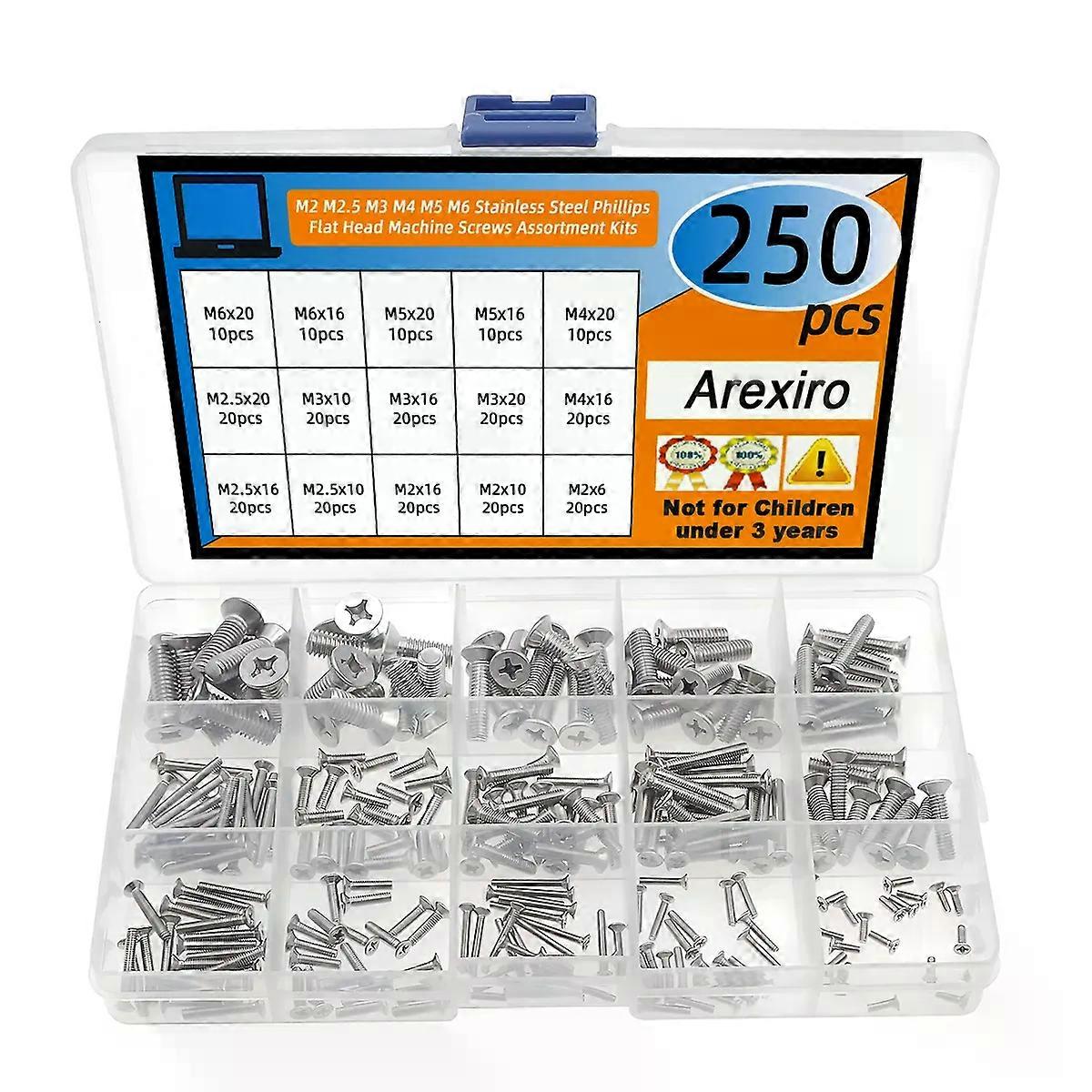 M2 M2.5 M3 M4 M5 M6 Stainless Steel Phillips Flat Head Machine Screws Assortment Kit