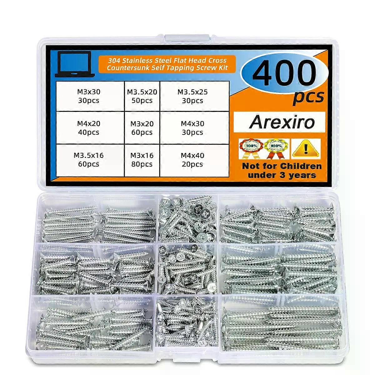 400PCS Wood Screws Assortment, M3, M3.5, M4, Countersunk Self Tapping Screws, Zinc Coated, DIY, Furniture Repairs