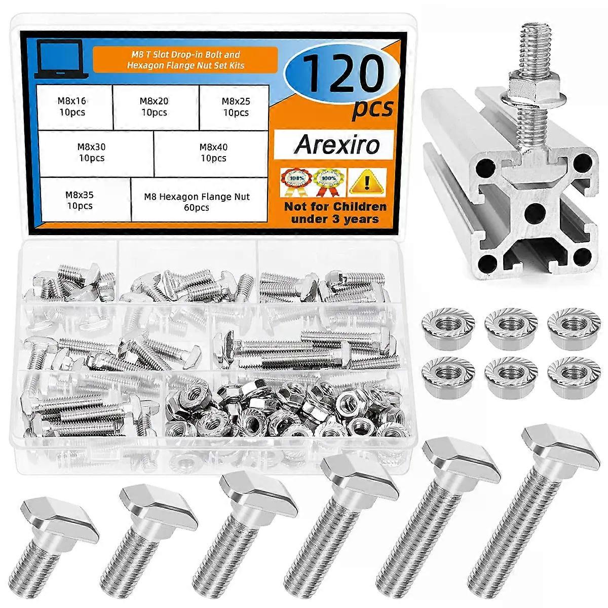 120Pcs M8x16/20/25/30/35/40MM T-slot Insert Bolts with Hexagonal Flange Nuts Set Hammer Head European Standard 40 Series