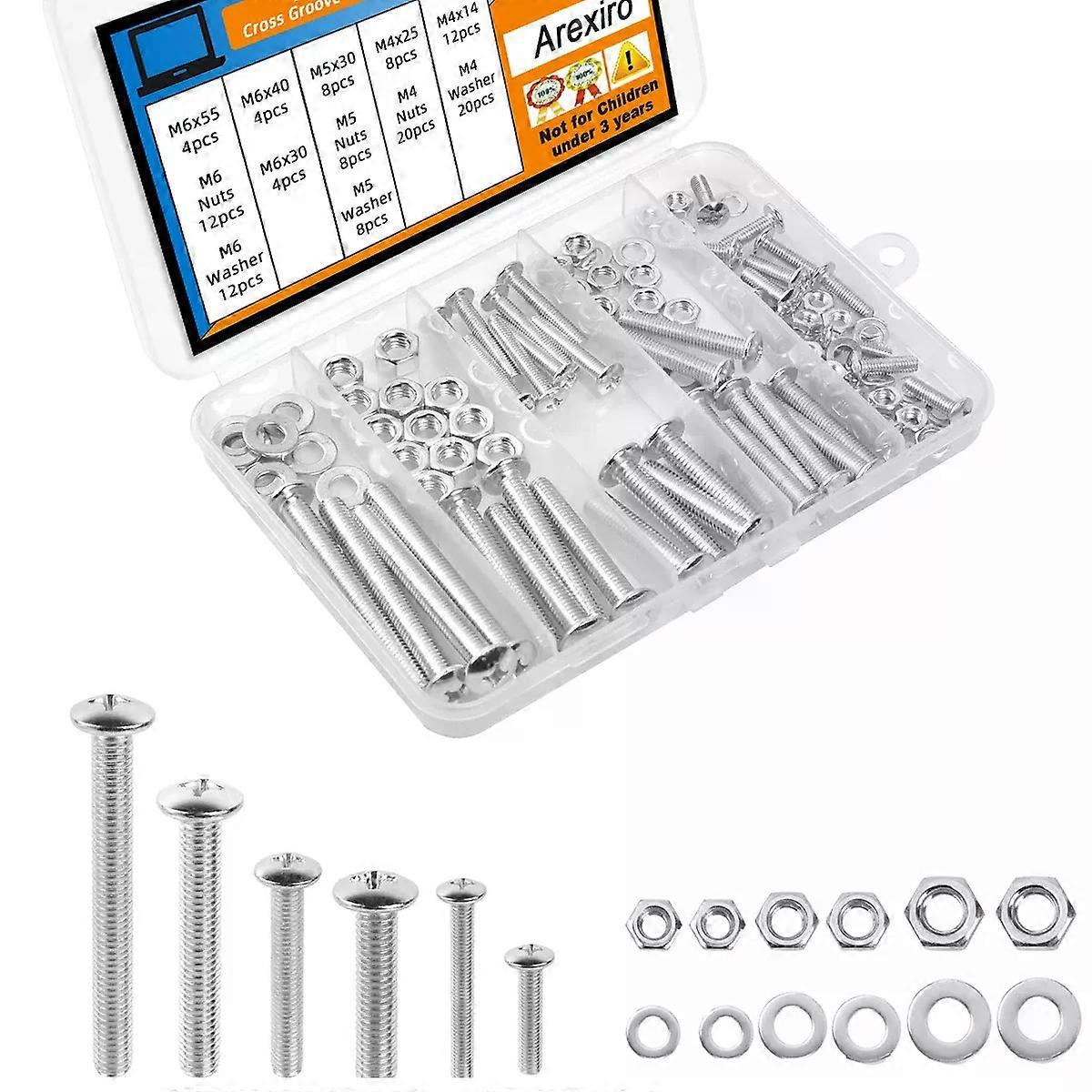 120Pcs 304 Stainless Steel Cross Groove Flat Head Screw Nut and Bolt Combination Kit M6x55 M6x40 M6x30 M5x30 M4x25 M4x14