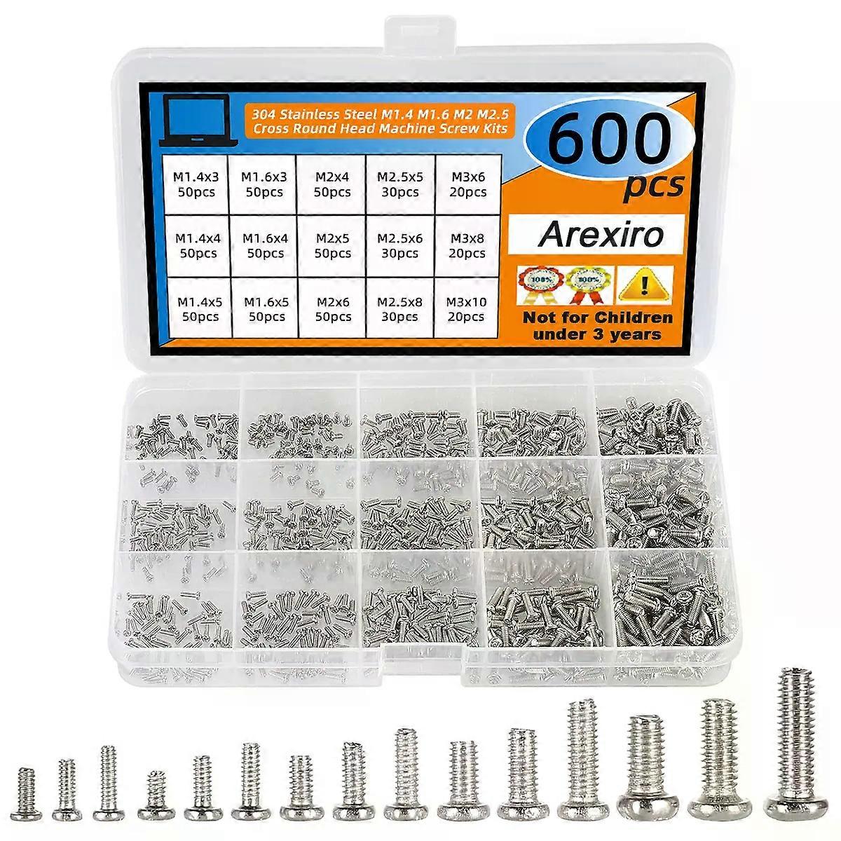 600Pcs M1.4/M1.6/M2.5/M3 304 Stainless Steel Cross Round Head Small Machine Screws, Mini Screw Combination Kit