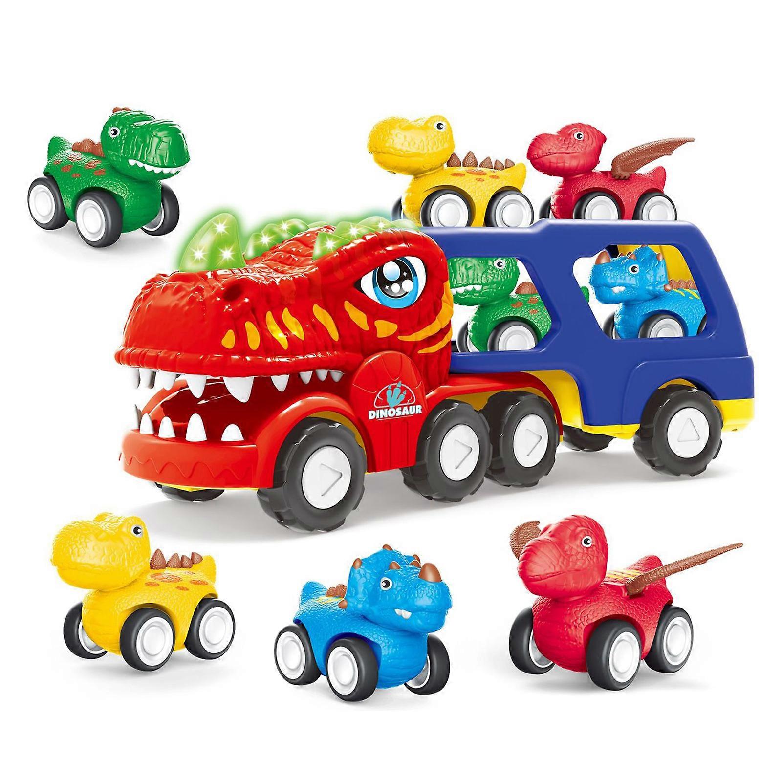 Toddler Dinosaur Carrier Truck Car Set Double-Decker Transport Pull Back Vehicle Toy Children Goody Bag Filler Car Gift Multicolor