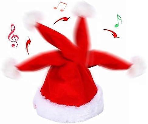 Singing Christmas Hat Battery Powered Dancing Santa Hat for Adults Kids Plush Velvet Funny Santa Hat Swing with Music Xmas Hat for New Year Party
