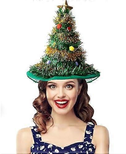 Santa Hat, Christmas Tree Hat, Adult Green Gold Sequin, with Star Novelty Fun Xmas Party Silly Hat, Santa Party Fancy Witch Hat Holiday Decorations He