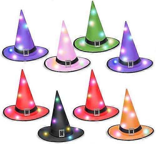 8-Piece Witch Hat Set With 80 LED Lights, Witch Hat Decoration For Costumes, Role-Playing, Halloween Parties, Gifts Holiday Dress-Up