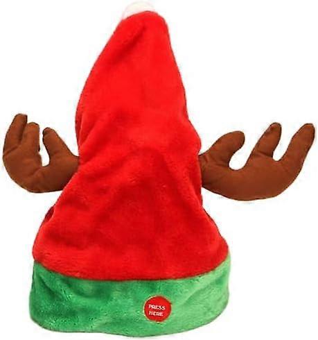 Santa Hat Singing and Dancing Electric Christmas Hat with Reindeer Antlers Plush Velvet Cap for Christmas New Year Party Supplies