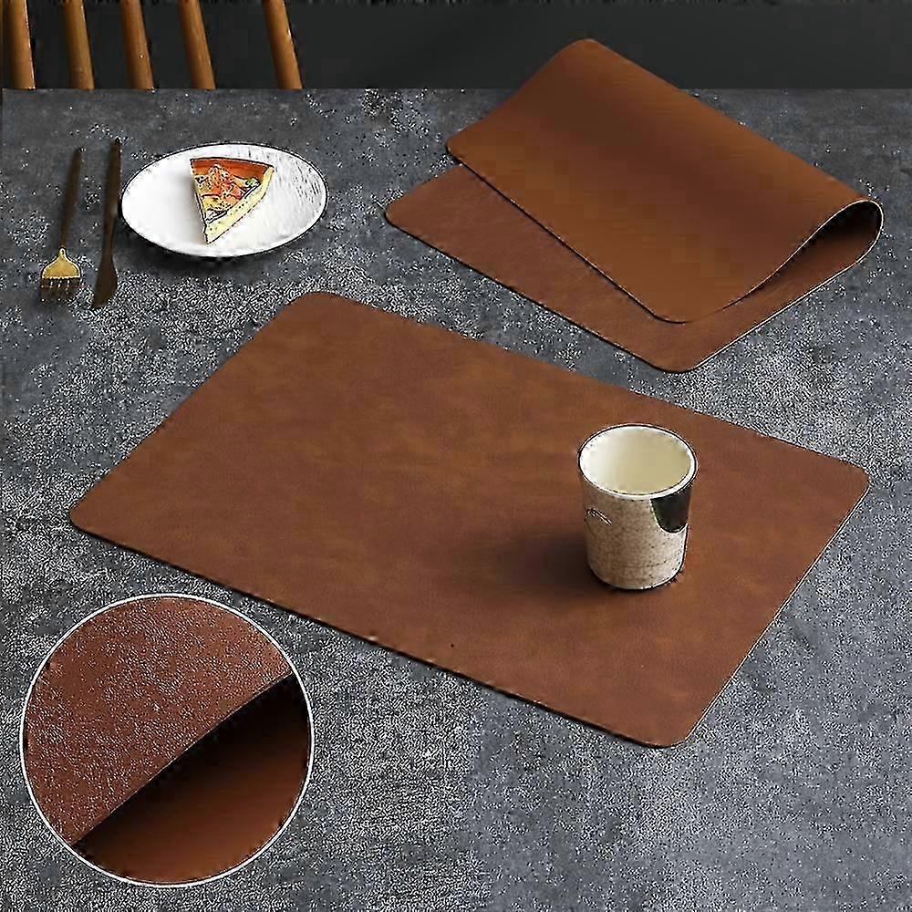 4pcs, Leather Placemats, Rectangular, Waterproof, Heat Insulated Table Mats For Dining Kitchen, Brown Cowhide Pattern Design4pcs Walnut Brown szrh21