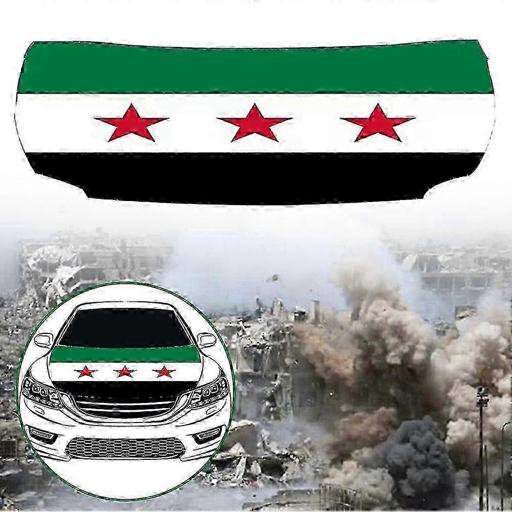 w Syrian Flag Bonnet Banner Car Hood Cover Elastic Fabrics For SUV Truck Decor