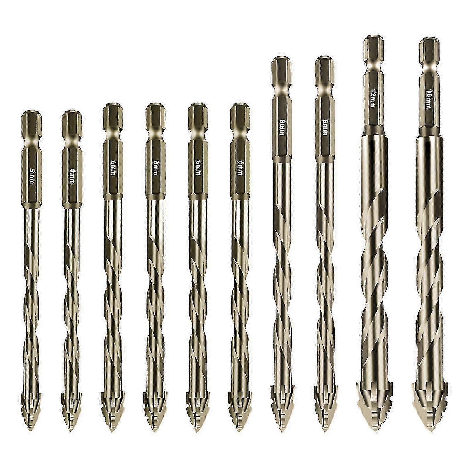 w 10Pcs Four-Flute Sawtooth Eccentric Drill Bit Size 5/6/8/10/12mm,Four-Edged Tungsten Steel (Yellow)