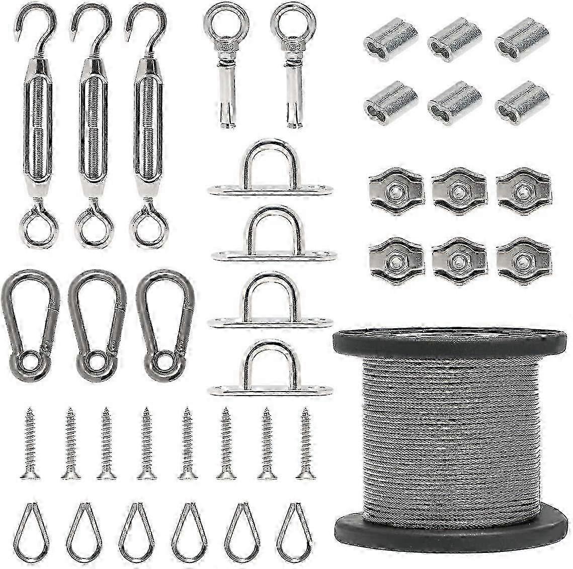 w Outdoor String Light Hanging Kit,Wire Rope,50M Stainless Steel Coated Cable Wire Rope,Metal Cable with Turnbuckle Wire Tensioner,Cable