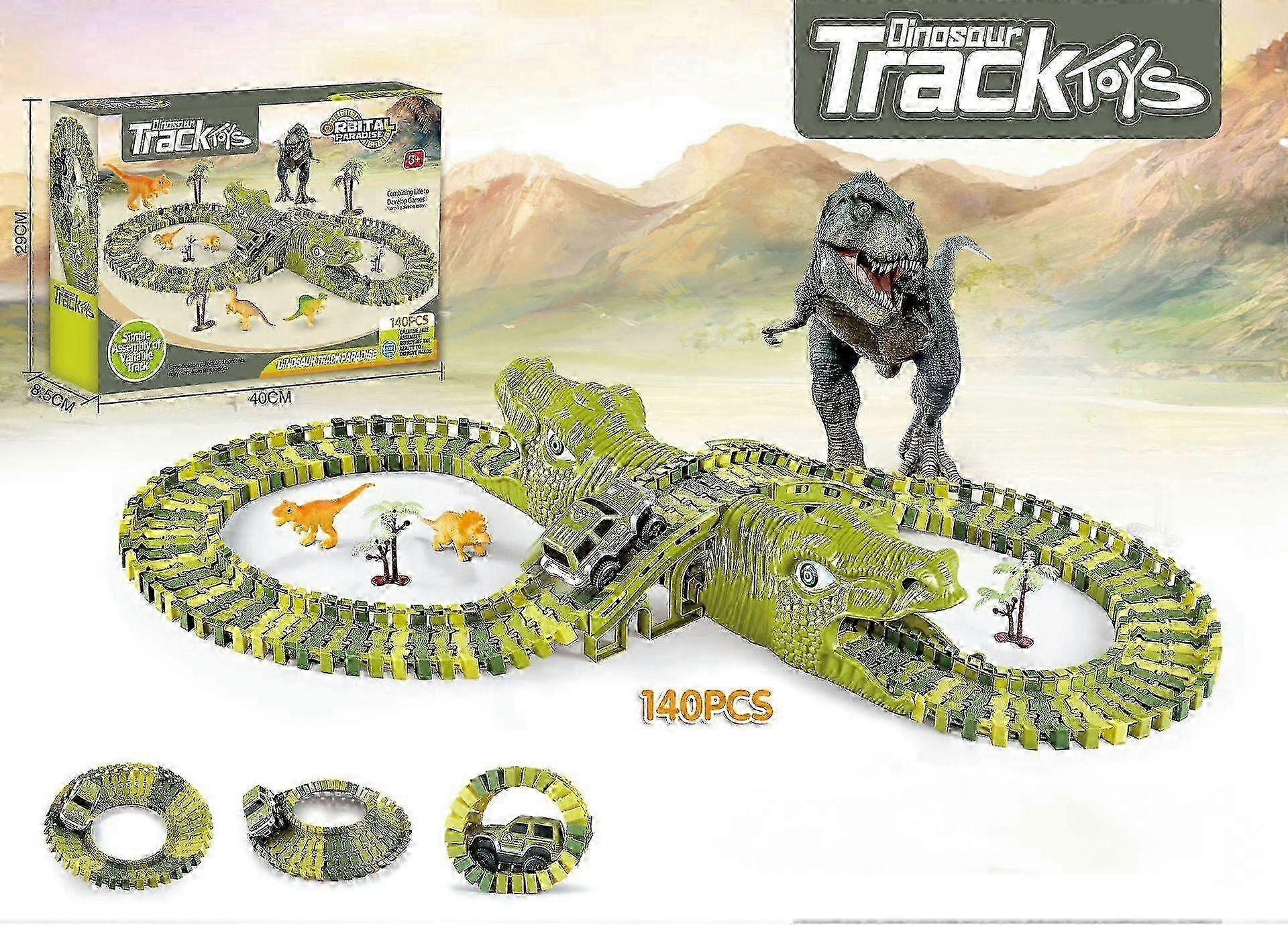 w Dinosaure électrique Piste Voiture Jouets Diy Assemblé Montagnes Russes Tunnel Magie Courses pour Enfants