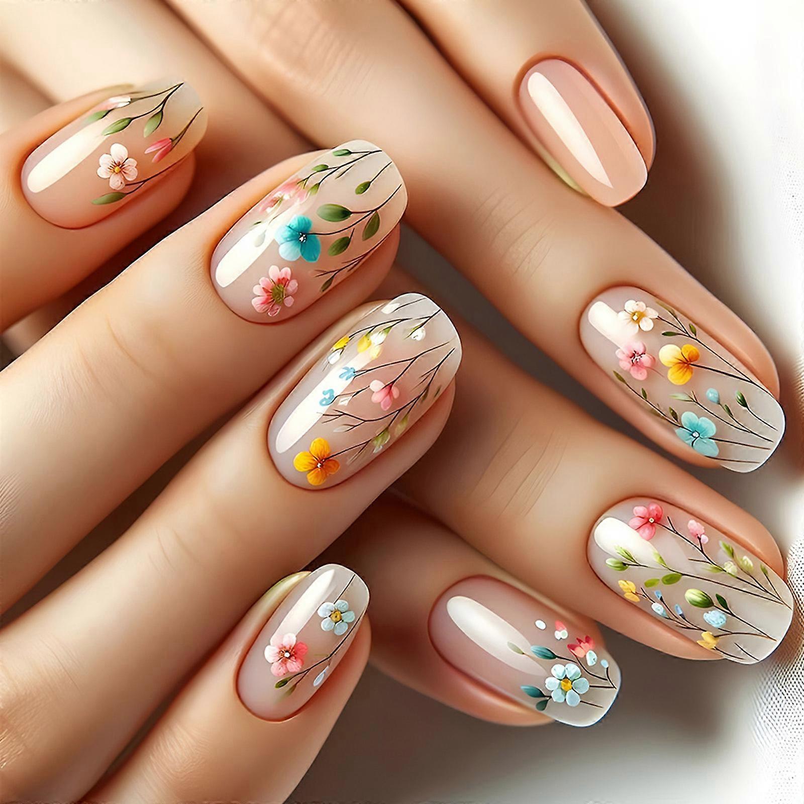 24pcs Flower Press On Nail Full Cover Artificial Nail False Nail Stick on Nail Maicure Easy To Apply And Remove Multicolor