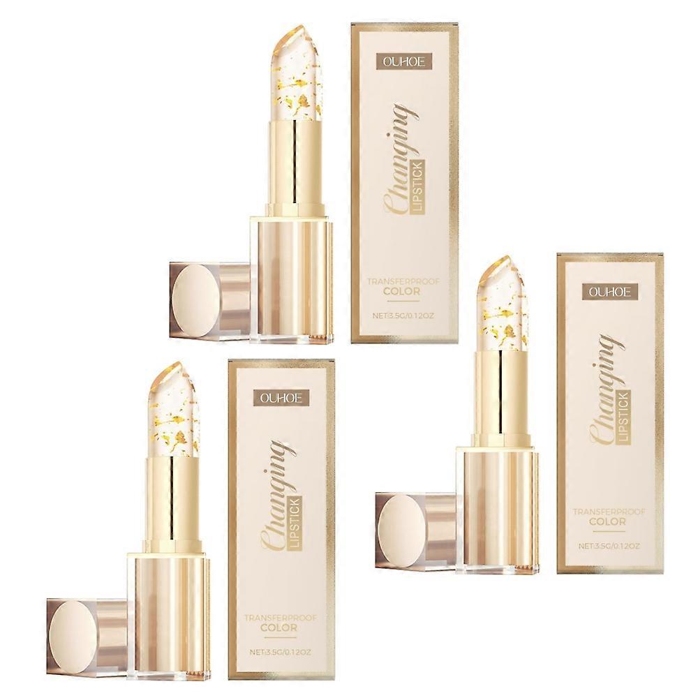3x Color Changing Lipstick Gold Foil Moisturizing Lip Balm Desalinates Lip Lines Anti Dryness for Everyday Makeup
