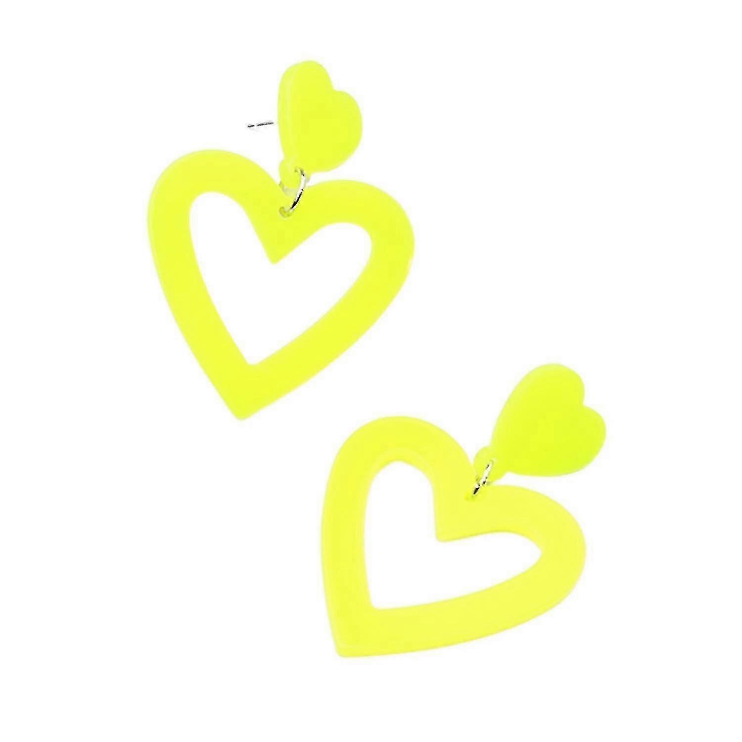 w 1 Pair Hollow-out Love Heart Dangle Earrings Candy-Colored Earrings Double Heart Drop Earrings
