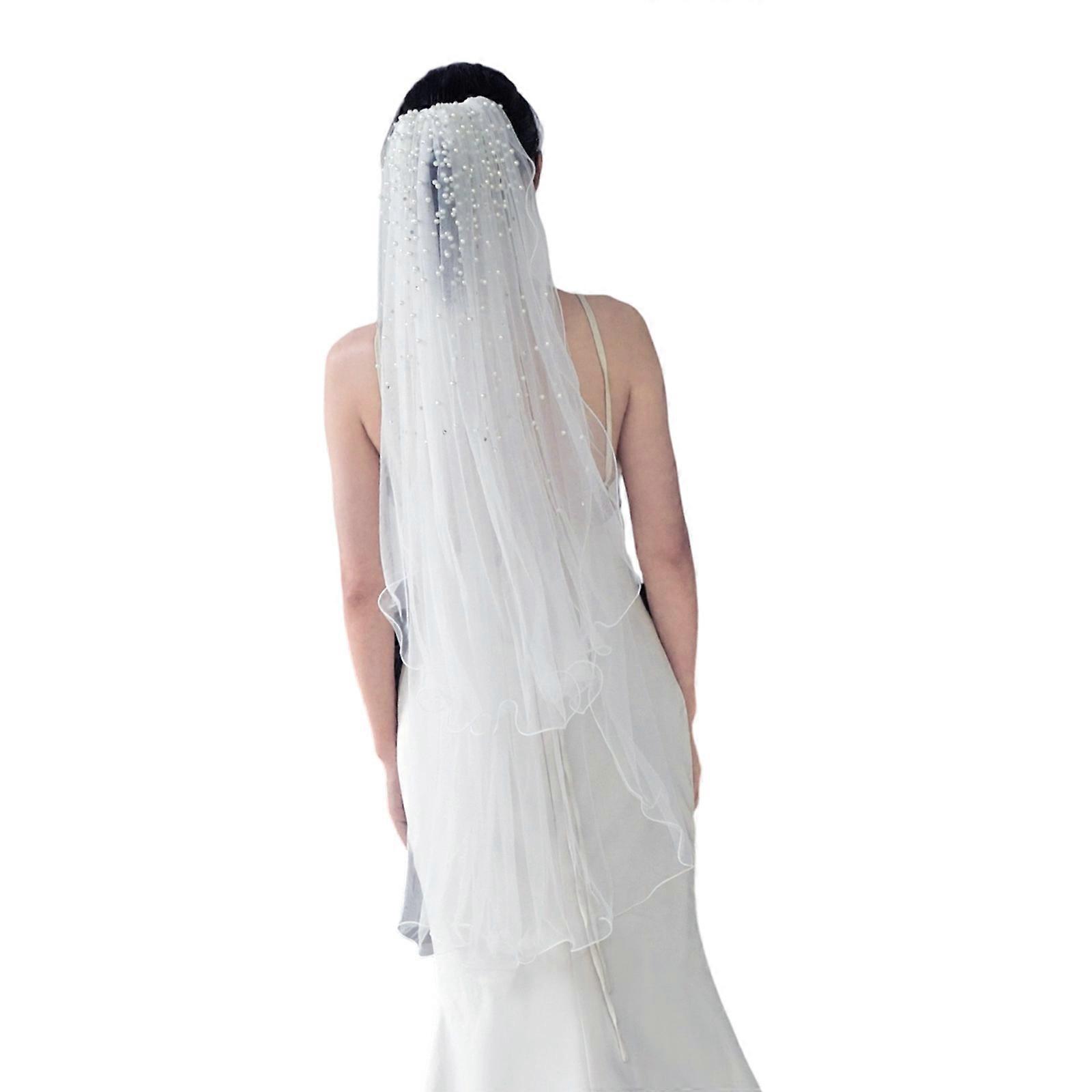 Classical Bridal Veils Double Layer Sheer Hair Accessory With Elegant Pearls Decoration Secure Fit Wedding Headpiece Straightforward