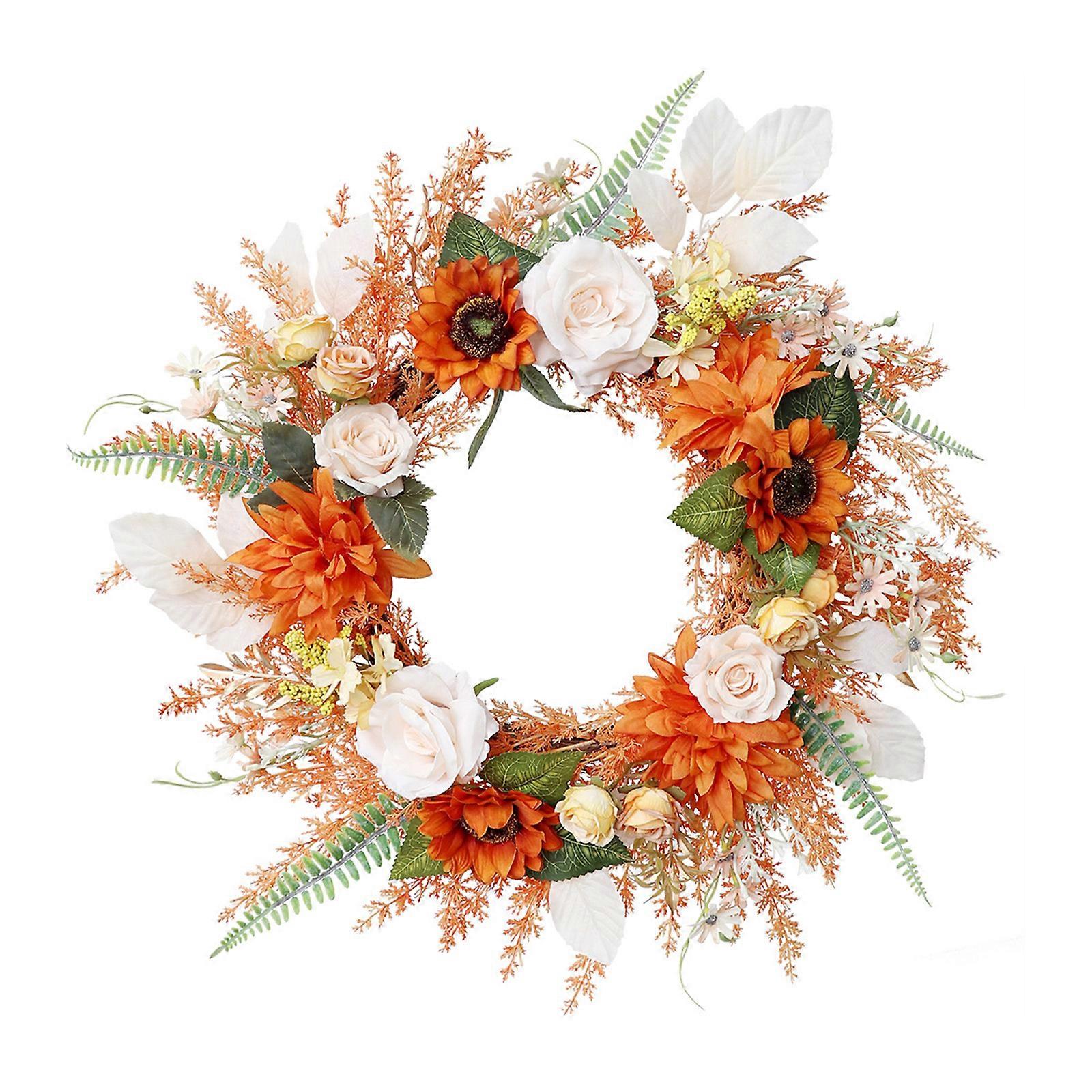 Orange Thanksgiving Wreath Decoration Functional Fall Floral Hoop Rose Sunflowers Wreath for Front Door and Wall Decors Multicolor