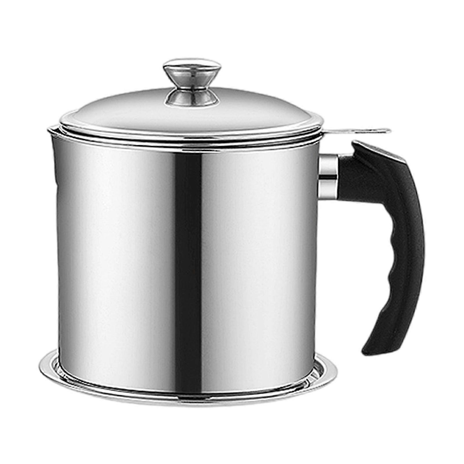 Stainless Steel Oil Container Cooking Grease Can with Strainer and Tray Large Capacity Meat Frying Oil Jar Kitchen Tool Multicolor