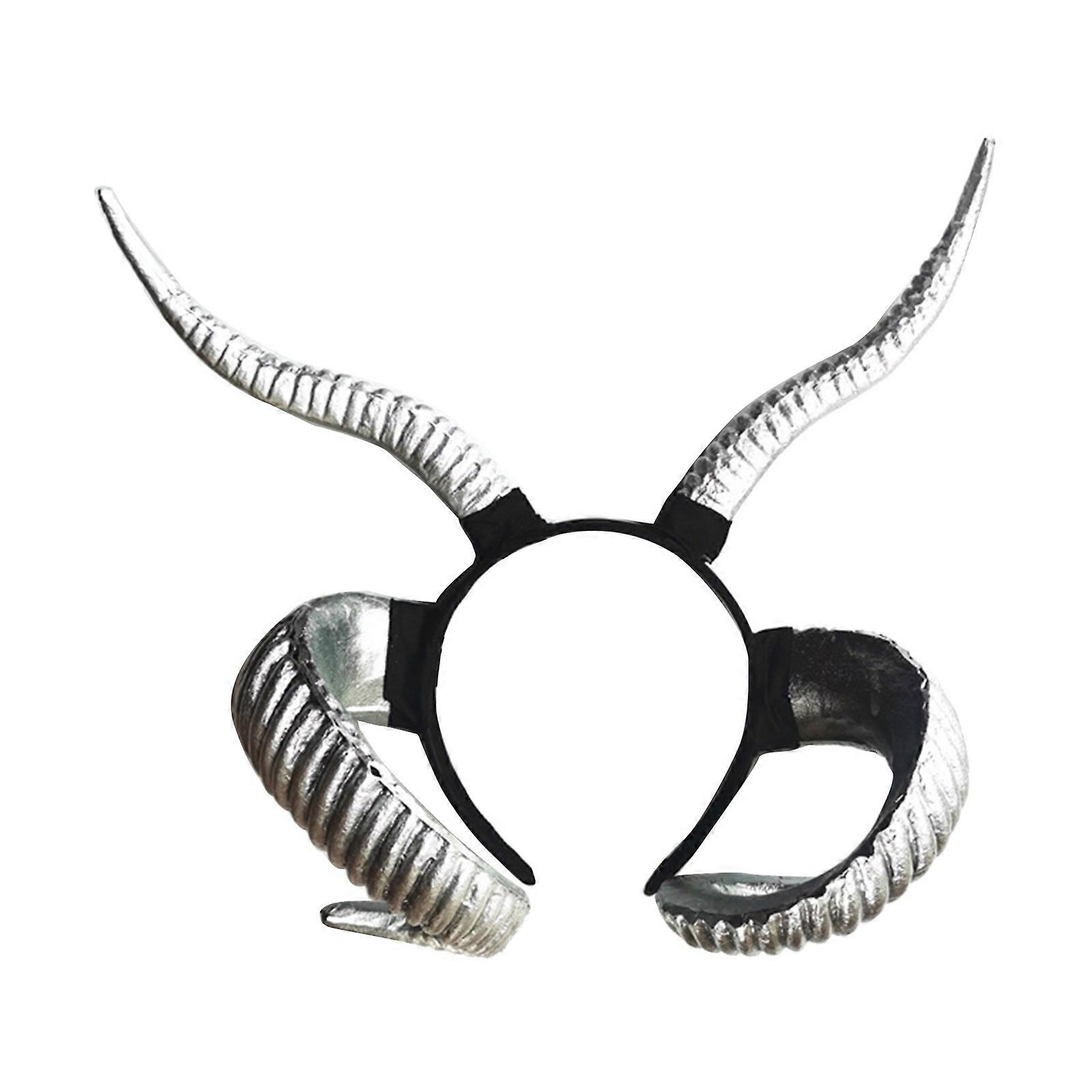 Realistic Goat Horn Headband for Adult Kids Cosplay Costume Large Horn Hairhoop Halloween Headdress ComicShow Headpiece Silver