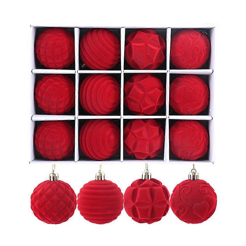 12Pcs Velvet Christmas Ornaments Balls, 2.4 inch Flocked Christmas Tree Shatterproof Hanging Vintage Balls Delica Ornaments,