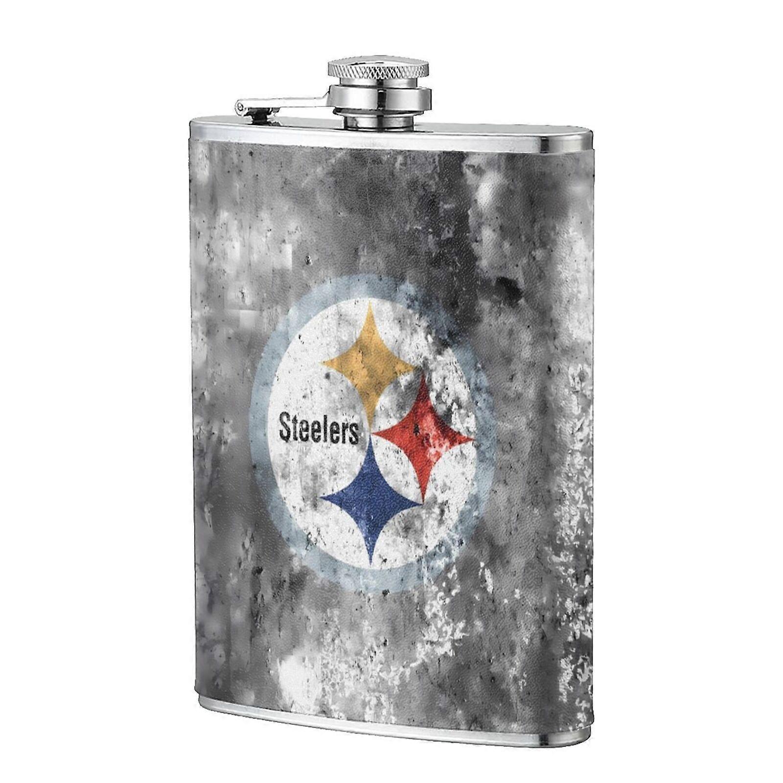 Steelers Flagon 8oz Stainless Steel Hip Flask - Food-Grade, Leather Wrap, Portable & Durable for Outdoor Sports, Camping, Weddings