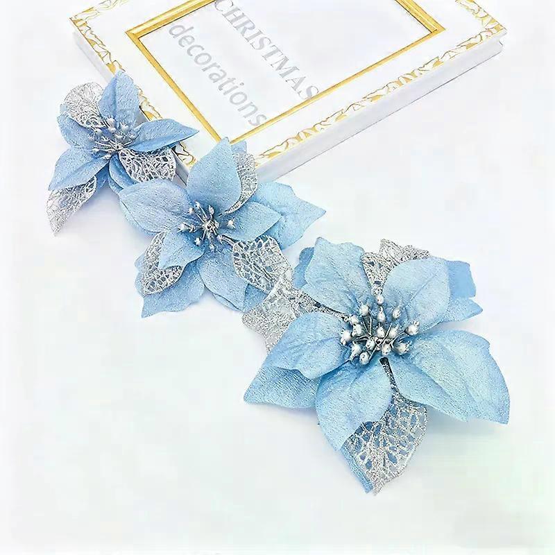 6Pcs/lot Glitter Artificial Christmas Flower Fake Flower Xmas Tree Decoration for Home Wreath Ornaments Happy New Year Gift