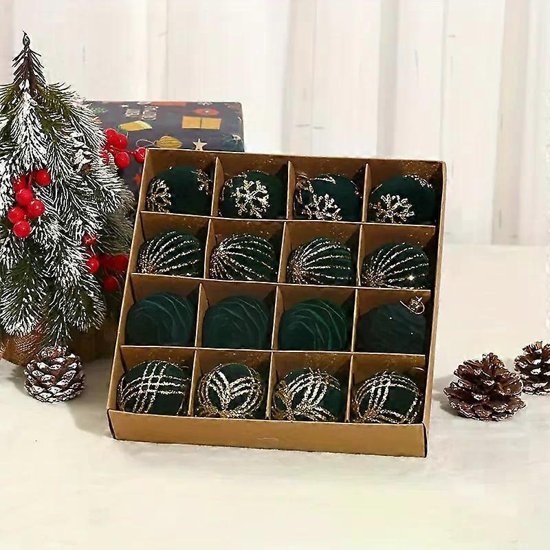 16pcs Elegant Christmas Tree Ornaments Velvet Balls Shatterproof Xmas Bulbs Decorations Set Red Christmas Balls Decor