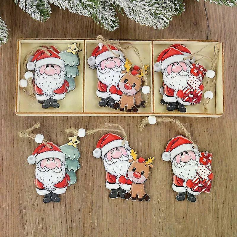 9pcs Christmas Wooden Pendants Santa Claus Elk Xmas Tree Hanging Oranment 2025 Noel Navidad Decorations For Home New Year Gift