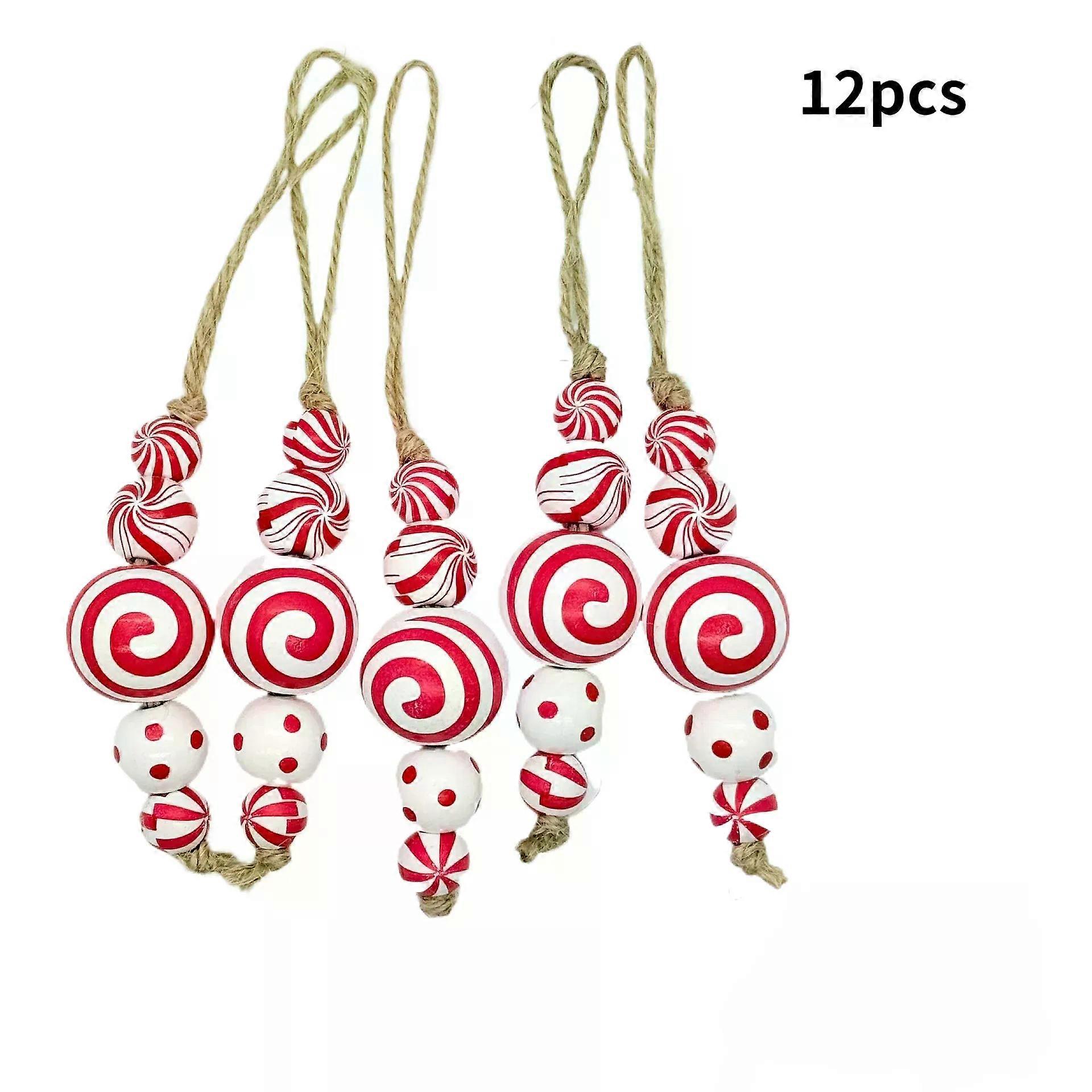 12 Park Candy Cane Christmas Tree Ornaments Swirl Wooden Beads Red White Candy Craft Beads Hanging Decorative for Xmas Party
