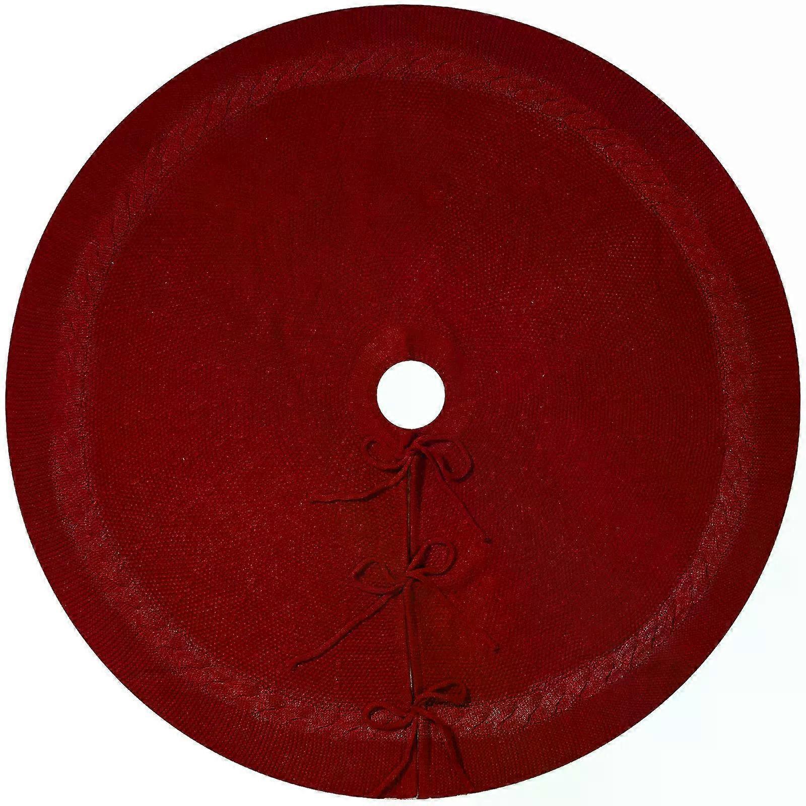 Cable Knitted Christmas Tree Skirt Red Cream Round Thicken Xmas Tree Base Cover Home Decorations Rustic Christmas Tree Decor